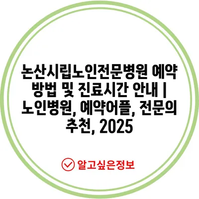논산시립노인전문병원 예약 방법 및 진료시간 공지 | 노인병원, 예약어플, 전연락 추천, 2025 에 대해 자주 묻는 질문 TOP 5