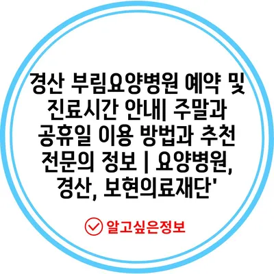 ✅ 부림요양병원 예약 방법을 자세히 알아보세요.
