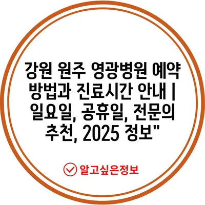 강원 원주 영광병원 예약 방법과 진료시간 공지 | 일요일, 공휴일, 전연락 추천, 2025 정보”에 대해 자주 묻는 질문 TOP 5