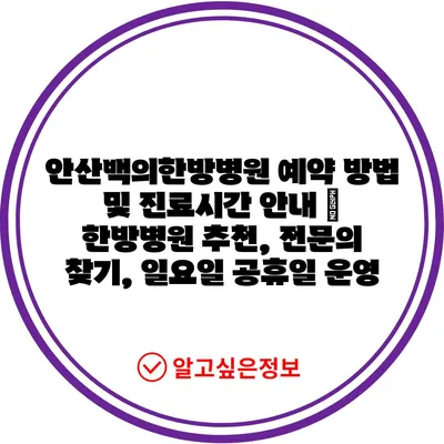 안산백의한방병원 예약 방법 및 진료시간 공지 | 한방병원 추천, 전연락 찾기, 일요일 공휴일 운영 에 대해 자주 묻는 질문 TOP 5