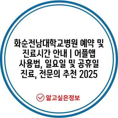 화순전남대학교병원 예약 및 진료시간 공지 | 어플앱 사용법, 일요일 및 공휴일 진료, 전연락 추천 2025에 대해 소개합니다.