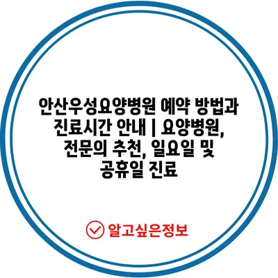 ✅ 안산우성요양병원 예약 방법과 진료시간을 지금 바로 확인하세요!
