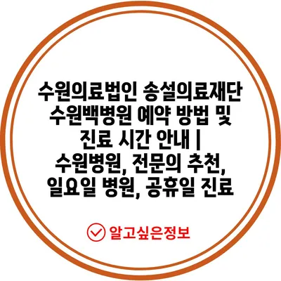✅ 수원백병원의 진료시간과 예약 방법을 쉽게 알아보세요!