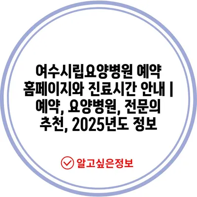 ✅ 여수시립요양병원 예약 방법과 진료시간을 알아보세요.