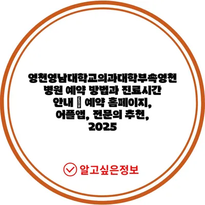 영천영남대학교의과대학부속영천병원 예약 방법과 진료시간 공지 | 예약 홈페이지, 어플앱, 전연락 추천, 2025 에 대해 자주 묻는 질문 TOP 5