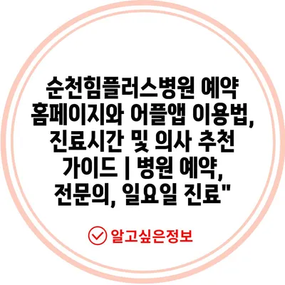 ✅ 순천힘플러스병원의 진료시간과 예약 방법을 자세히 알아보세요.