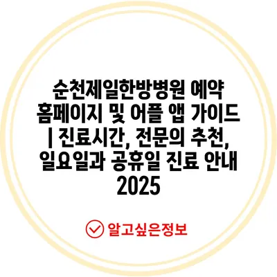 순천제일한방병원 예약 홈페이지 및 어플 앱 설명서 | 진료시간, 전연락 추천, 일요일과 공휴일 진료 공지 2025에 대해 소개합니다.