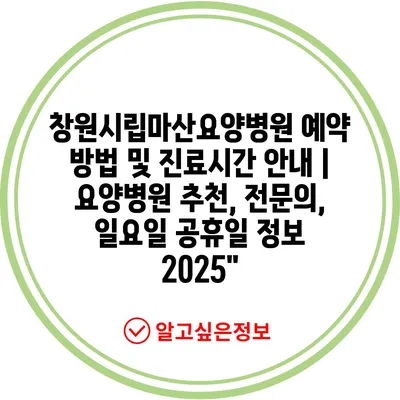 창원시립마산요양병원 예약 방법 및 진료시간 공지 | 요양병원 추천, 전연락, 일요일 공휴일 정보 2025에 대해 자주 묻는 질문 TOP 5