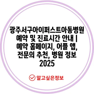 ✅ 광주서구아이퍼스트아동병원 예약 절차와 유의사항을 알아보세요.