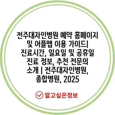 전주대자인병원 예약 홈페이지 및 어플앱 이용 설명서| 진료시간, 일요일 및 공휴일 진료 정보, 추천 전연락 소개 | 전주대자인병원, 종합병원, 2025 에 대해 자주 묻는 질문 TOP 5