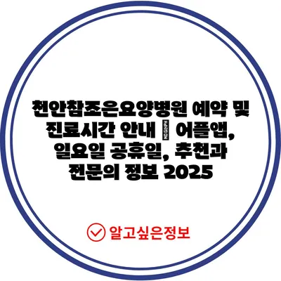천안참조은요양병원 예약 및 진료시간 공지 | 어플앱, 일요일 공휴일, 추천과 전연락 정보 2025