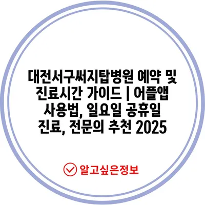대전서구써지탑병원 예약 및 진료시간 설명서 | 어플앱 사용법, 일요일 공휴일 진료, 전연락 추천 2025 에 대해 자주 묻는 질문 TOP 5