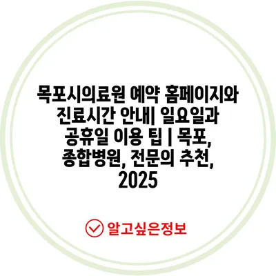 목포시의료원 예약 홈페이지와 진료시간 공지| 일요일과 공휴일 이용 팁 | 목포, 종합병원, 전연락 추천, 2025 에 대해 자주 묻는 질문 TOP 5