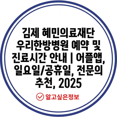 김제 혜민의료재단 우리한방병원 예약 및 진료시간 공지 | 어플앱, 일요일/공휴일, 전연락 추천, 2025에 대해 알아보겠습니다.