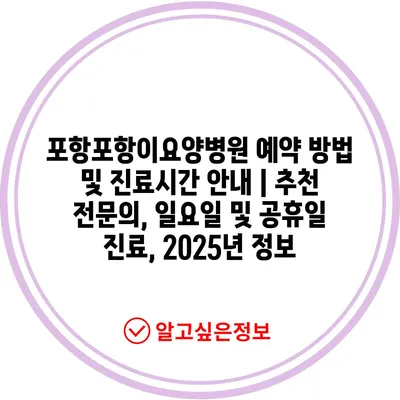 포항포항이요양병원 예약 방법 및 진료시간 공지 | 추천 전연락, 일요일 및 공휴일 진료, 2025년 정보에 대해 알아보겠습니다.