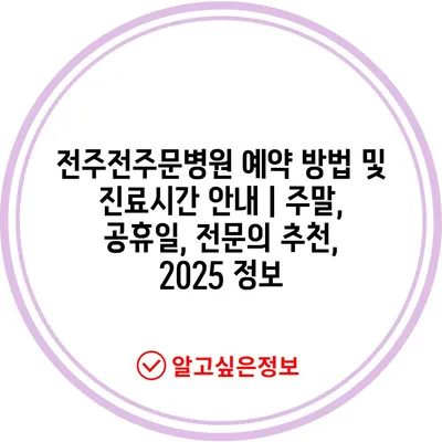 전주전주문병원 예약 방법 및 진료시간 공지 | 주말, 공휴일, 전연락 추천, 2025 정보 에 대해 자주 묻는 질문 TOP 5