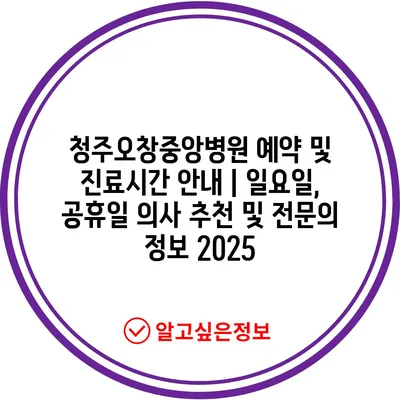 청주오창중앙병원 예약 및 진료시간 공지 | 일요일, 공휴일 의사 추천 및 전연락 정보 2025