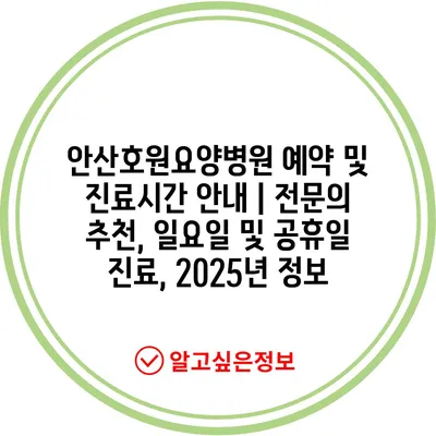 안산호원요양병원 예약 및 진료시간 공지 | 전연락 추천, 일요일 및 공휴일 진료, 2025년 정보