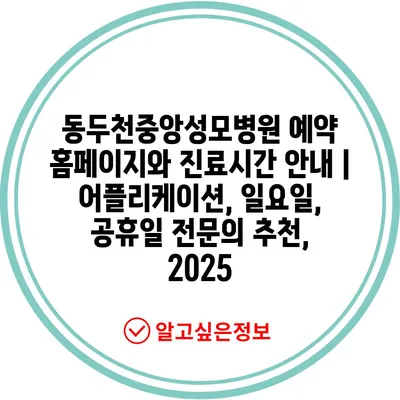 동두천중앙성모병원 예약 홈페이지와 진료시간 공지 | 어플리케이션, 일요일, 공휴일 전연락 추천, 2025