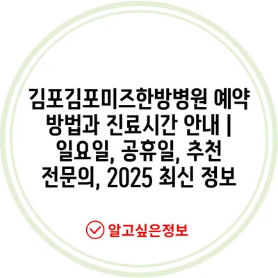 김포김포미즈한방병원 예약 방법과 진료시간 공지 | 일요일, 공휴일, 추천 전연락, 2025 최신 정보 에 대해 자주 묻는 질문 TOP 5