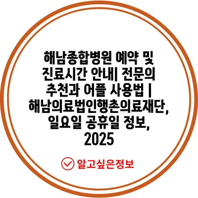 해남종합병원 예약 및 진료시간 공지| 전연락 추천과 어플 사용법 | 해남의료법인행촌의료재단, 일요일 공휴일 정보, 2025 에 대해 자주 묻는 질문 TOP 5