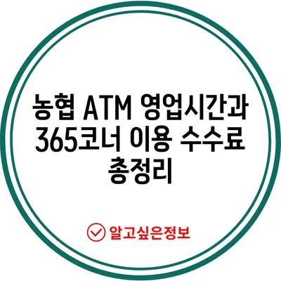 💡 농협 ATM 영업시간과 수수료 정보를 지금 바로 알아보세요. 💡