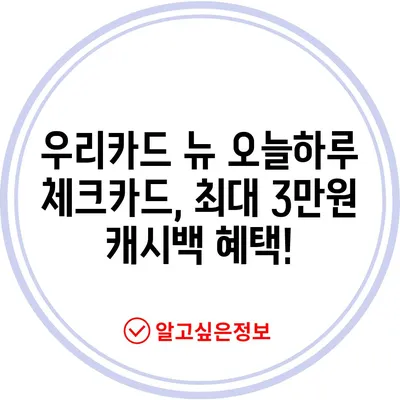 우리카드 뉴 오늘하루 체크카드, 최대 3만원 캐시백 혜택!
