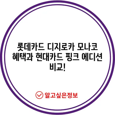 롯데카드 디지로카 모나코 혜택과 현대카드 핑크 에디션을 비교 분석해 보세요. 연회비, 할인 혜택, 최적의 선택을 도와드립니다.