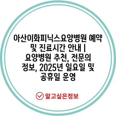 아산이화피닉스요양병원 예약 및 진료시간 공지 | 요양병원 추천, 전연락 정보, 2025년 일요일 및 공휴일 운영에 대해 자주 묻는 질문 TOP 5