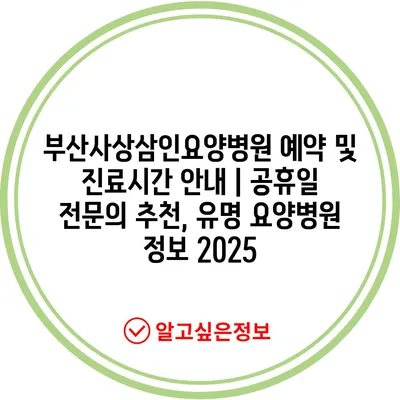 부산사상삼인요양병원 예약 및 진료시간 공지 | 공휴일 전연락 추천, 유명 요양병원 정보 2025 에 대해 자주 묻는 질문 TOP 5
