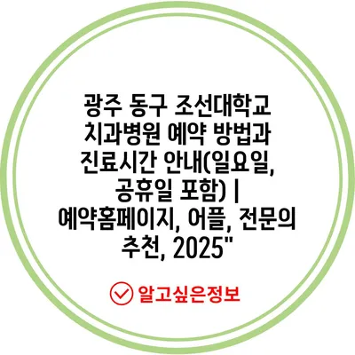광주 동구 조선대학교 치과병원 예약 방법과 진료시간 공지(일요일, 공휴일 포함) | 예약홈페이지, 어플, 전연락 추천, 2025에 대해 자주 묻는 질문 TOP 5