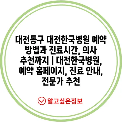 대전동구 대전한국병원 예약 방법과 진료시간, 의사 추천까지 | 대전한국병원, 예약 홈페이지, 진료 공지, 전문가 추천 에 대해 자주 묻는 질문 TOP 5