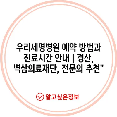 ✅ 우리세명병원의 예약 방법을 지금 바로 알아보세요.