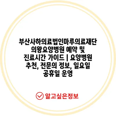 부산사하의료법인마루의료재단 의왕요양병원 예약 및 진료시간 설명서 | 요양병원 추천, 전연락 정보, 일요일 공휴일 운영 에 대해 자주 묻는 질문 TOP 5