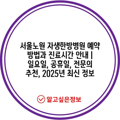 서울노원 자생한방병원 예약 방법과 진료시간 공지 | 일요일, 공휴일, 전연락 추천, 2025년 최신 정보 에 대해 자주 묻는 질문 TOP 5