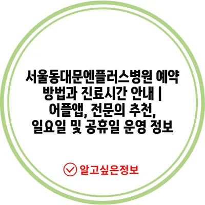 서울동대문엔플러스병원 예약 방법과 진료시간 안내 | 어플앱, 전문의 추천, 일요일 및 공휴일 운영 정보