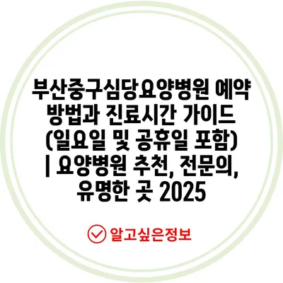 부산중구심당요양병원 예약 방법과 진료시간 가이드 (일요일 및 공휴일 포함) | 요양병원 추천, 전문의, 유명한 곳 2025