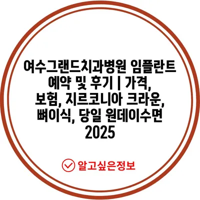 여수그랜드치과병원 임플란트 예약 및 후기 | 가격, 보험, 지르코니아 크라운, 뼈이식, 당일 원데이수면 2025에 대해 알아보겠습니다.