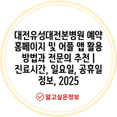대전유성대전본병원 예약 홈페이지 및 어플 앱 활용 방법과 전연락 추천 | 진료시간, 일요일, 공휴일 정보, 2025에 대해 알아보겠습니다.