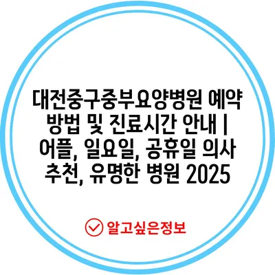 대전중구중부요양병원 예약 방법 및 진료시간 공지 | 어플, 일요일, 공휴일 의사 추천, 유명한 병원 2025에 대해 알아보겠습니다.
