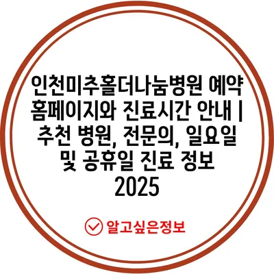 ✅ 미추홀더나눔병원의 진료시간과 예약 방법을 자세히 알아보세요.