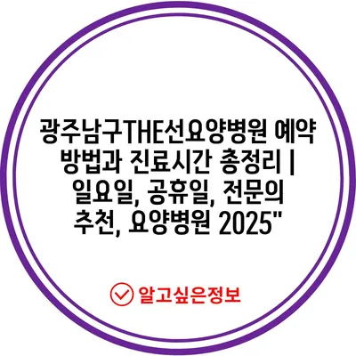 광주남구THE선요양병원 예약 방법과 진료시간 총정리 | 일요일, 공휴일, 전연락 추천, 요양병원 2025″에 대해 자주 묻는 질문 TOP 5