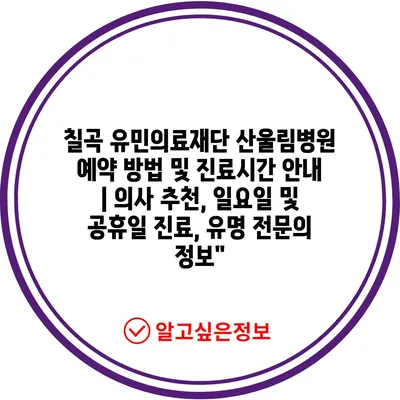 ✅ 칠곡 유민의료재단 산울림병원 예약 방법을 자세히 알아보세요.