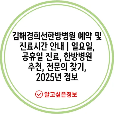 김해경희선한방병원 예약 및 진료시간 공지 | 일요일, 공휴일 진료, 한방병원 추천, 전연락 찾기, 2025년 정보 에 대해 자주 묻는 질문 TOP 5