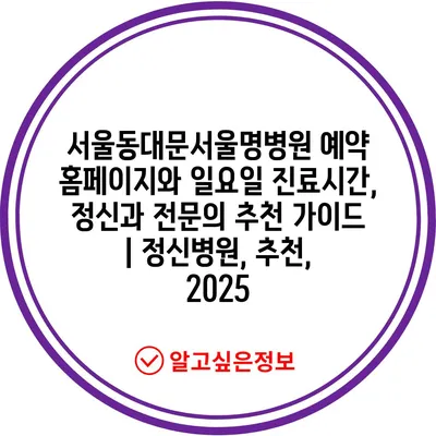 서울동대문서울명병원 예약 홈페이지와 일요일 진료시간, 정신과 전연락 추천 설명서 | 정신병원, 추천, 2025 에 대해 자주 묻는 질문 TOP 5