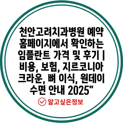 천안고려치과병원 예약 홈페이지에서 확인하는 임플란트 가격 및 후기 | 비용, 보험, 지르코니아 크라운, 뼈 이식, 원데이 수면 공지 2025에 대해 알아보겠습니다.