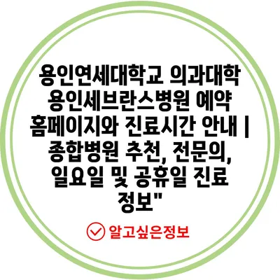 ✅ 용인세브란스병원의 진료시간과 예약 방법을 지금 바로 알아보세요!
