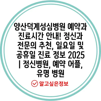 양산덕계성심병원 예약과 진료시간 공지! 정신과 전연락 추천, 일요일 및 공휴일 진료 정보 2025에 대해 소개합니다.