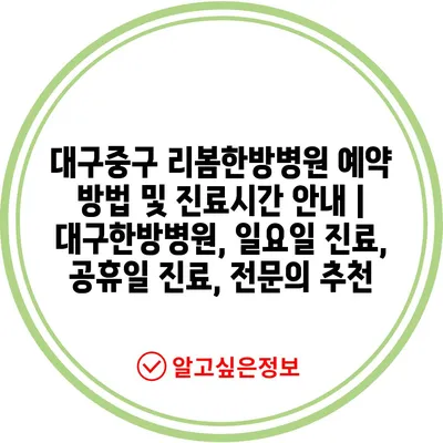 ✅ 대구중구 리봄한방병원의 진료시간과 예약 방법을 자세히 알아보세요.