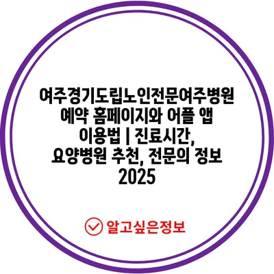 ✅ 여주경기도립노인전문여주병원 예약 방법을 자세히 알아보세요.
